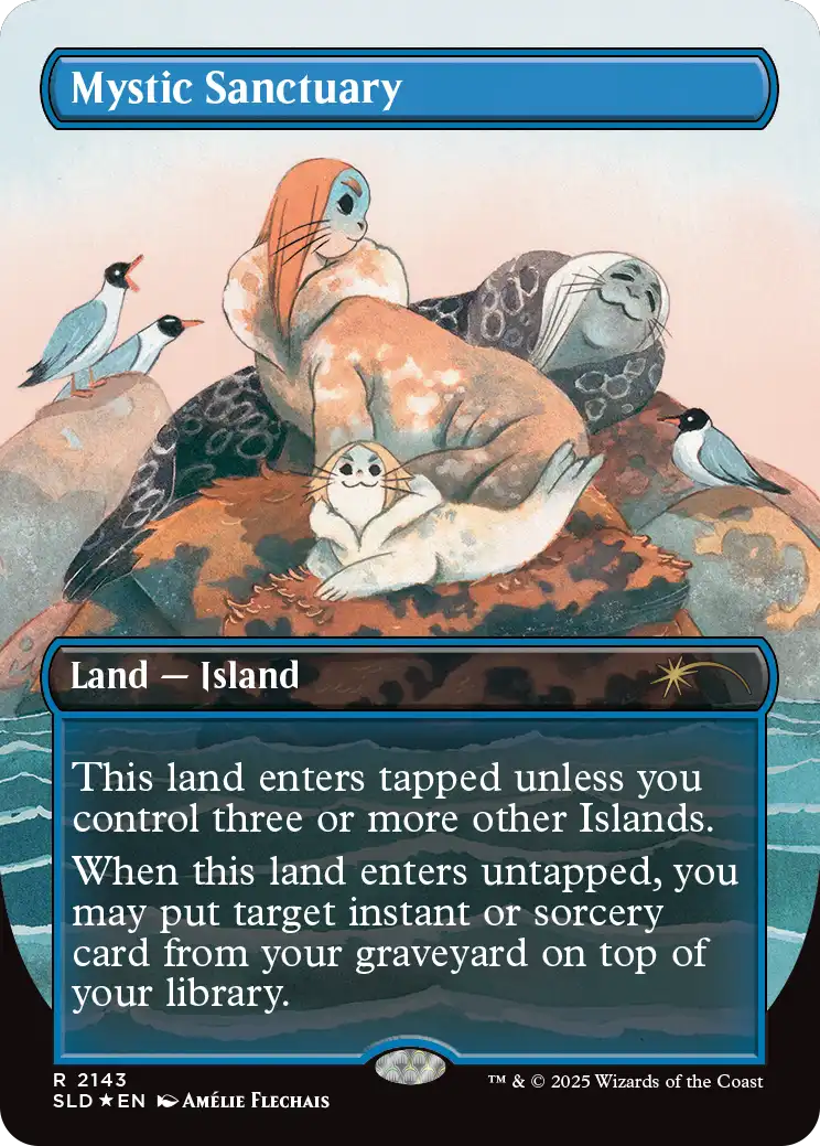 This release marks the first new Dandân artwork since 2006, with ten copies of the iconic Fish split across two stunning borderless foil treatments. Four distinct Island artworks form a breathtaking panoramic scene when placed together, adding serious visual flair to every game. In all, 46 cards sport fresh borderless foil finishes, while the remaining 34 retain classic retro frames updated with modern card text and the exclusive Secret Lair (SLD) set code. The result is a deck that feels both nostalgic and cutting-edge.